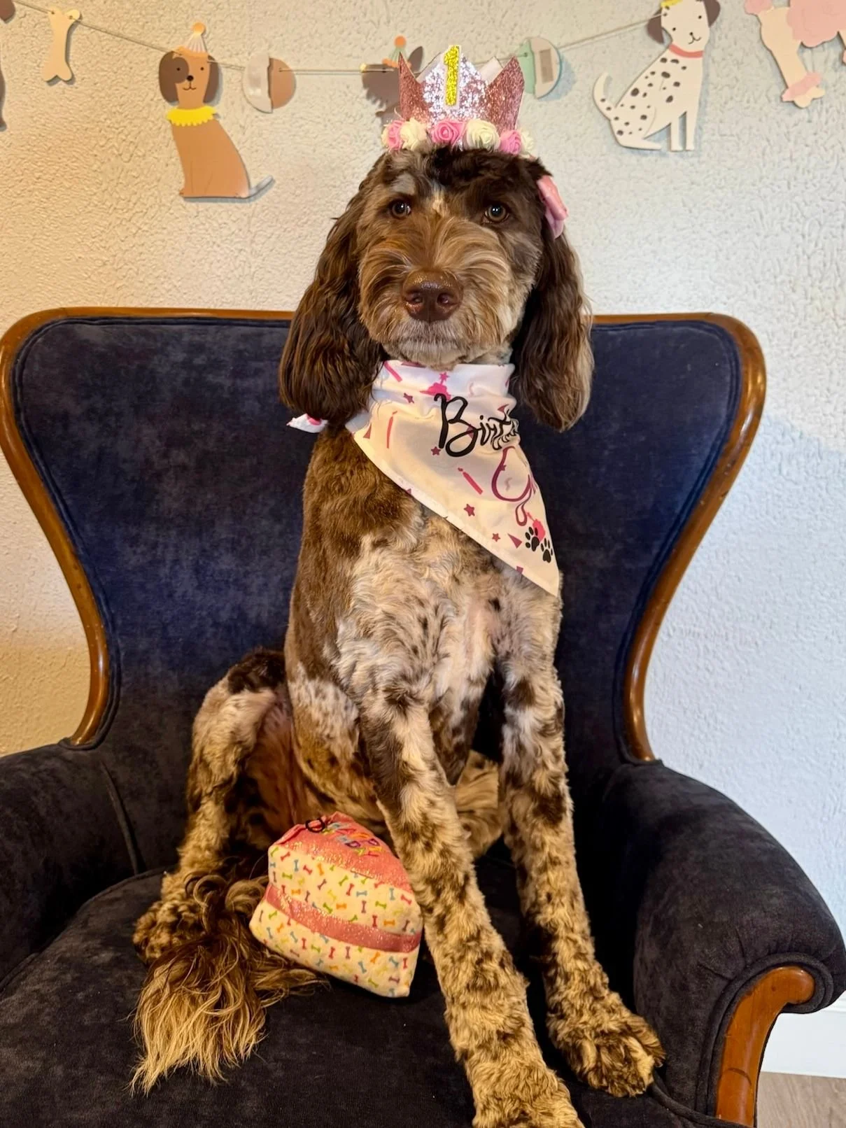 Don't let her petite size fool you—Pixie is bursting with confidence and has never met a stranger she didn't instantly adore. She's the ultimate Velcro puppy, always glued to her people's side, deeply connected, and never wanting to miss a single moment with her pack. She must be part of every event, every cuddle session, every adventure!